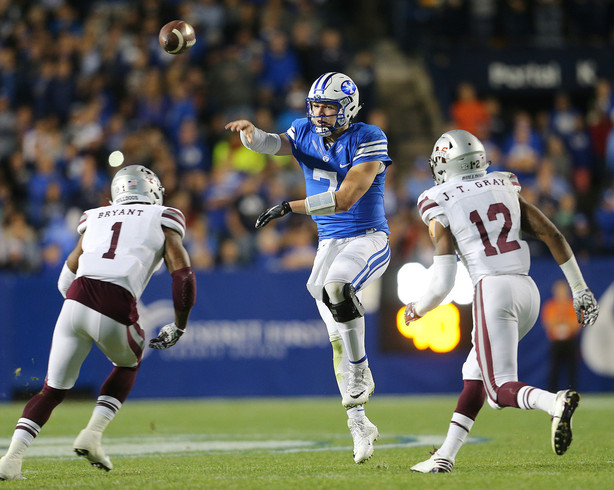 | Taysom Hill throwing the game winning touchdown pass against Mississippi State in 2016. (Scott G. Winterton, Deseret News) |